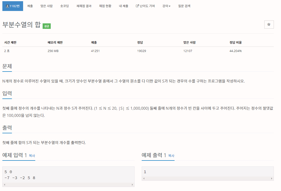 C++ / 백준 / 1182 / 부분수열의 합 본문