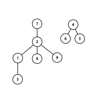 4, 5, 6은 7과 연결되지 않으므로 무시해도 되는 트리이다.