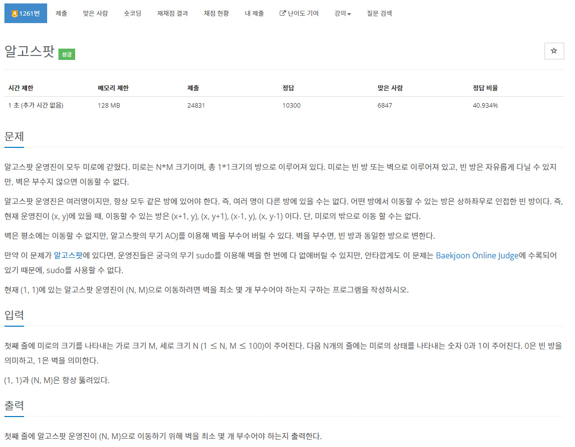 https://www.acmicpc.net/problem/1261
