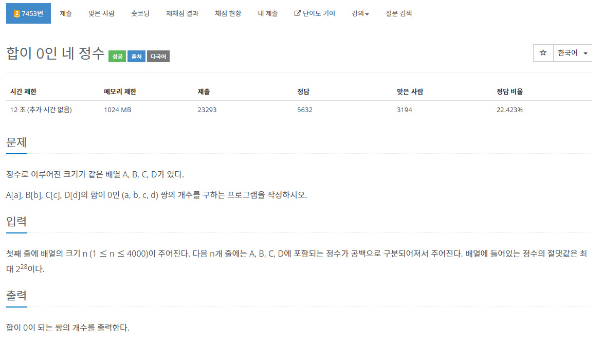 https://www.acmicpc.net/problem/7453