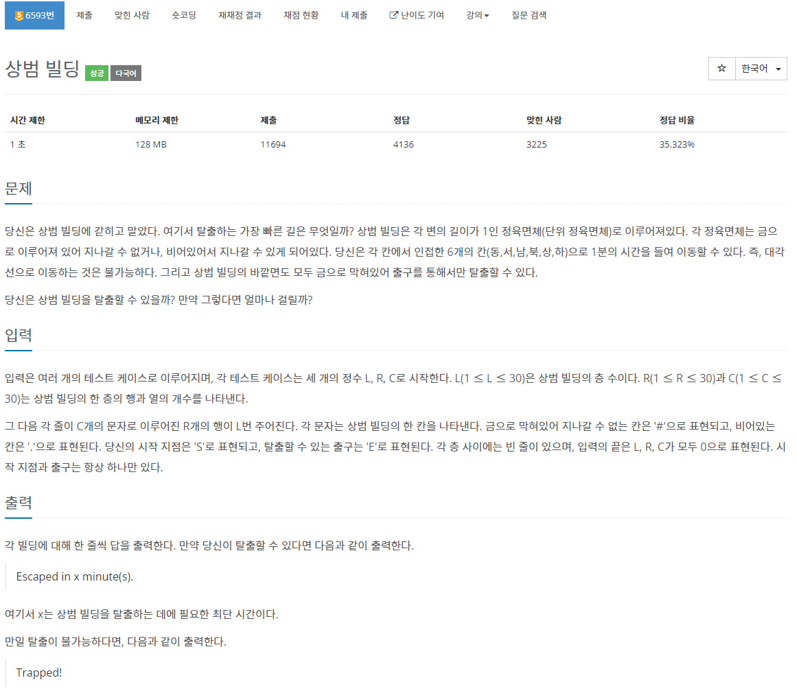C++ / 백준 / 6593 / 상범 빌딩 본문