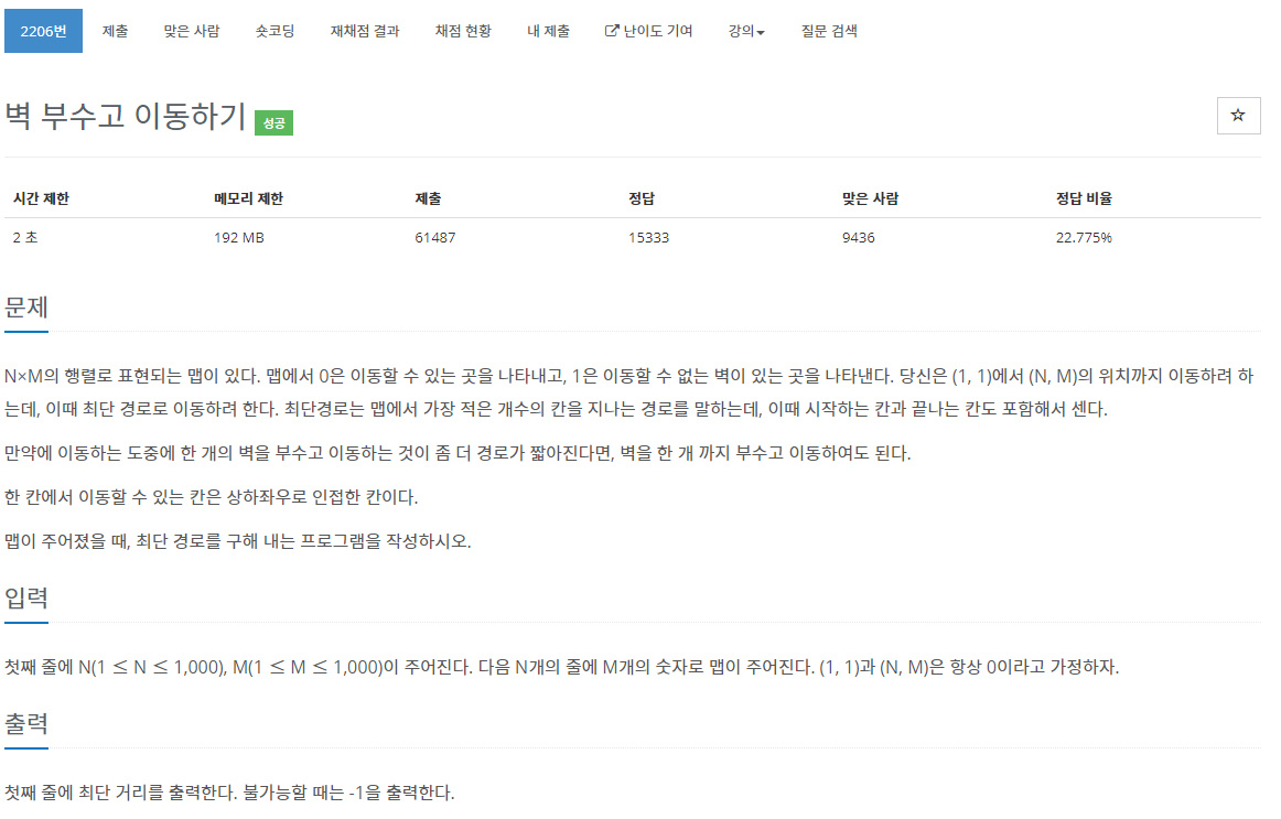 2206번: 벽 부수고 이동하기