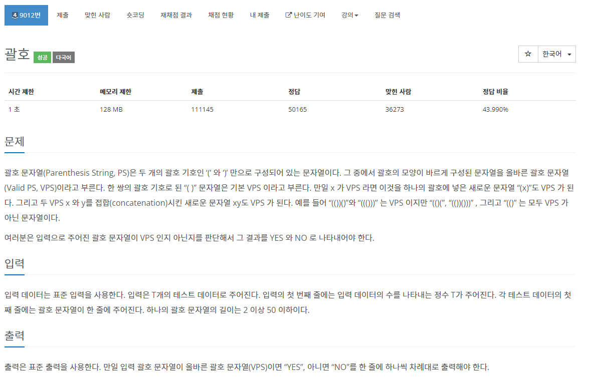 https://www.acmicpc.net/problem/9012