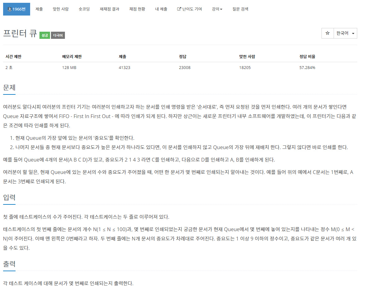 C++ / 백준 / 1966 / 프린터 큐 본문