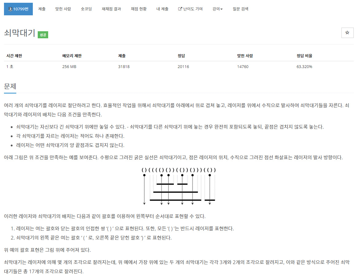 10799번: 쇠막대기