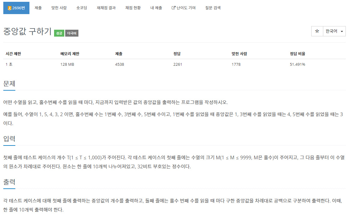 C++ / 백준 / 2696 / 중앙값 구하기 본문
