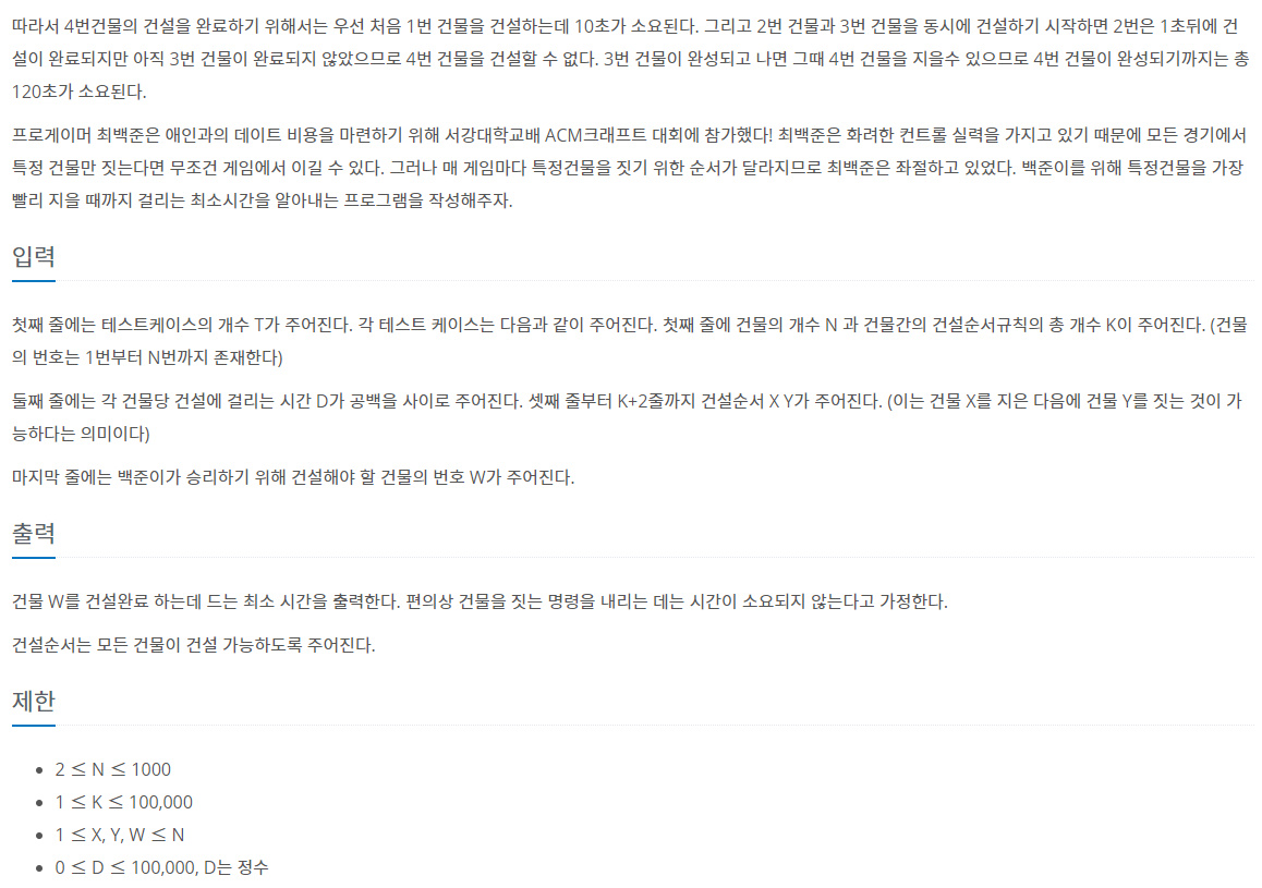 C++ / 백준 / 1005 / ACM Craft 본문