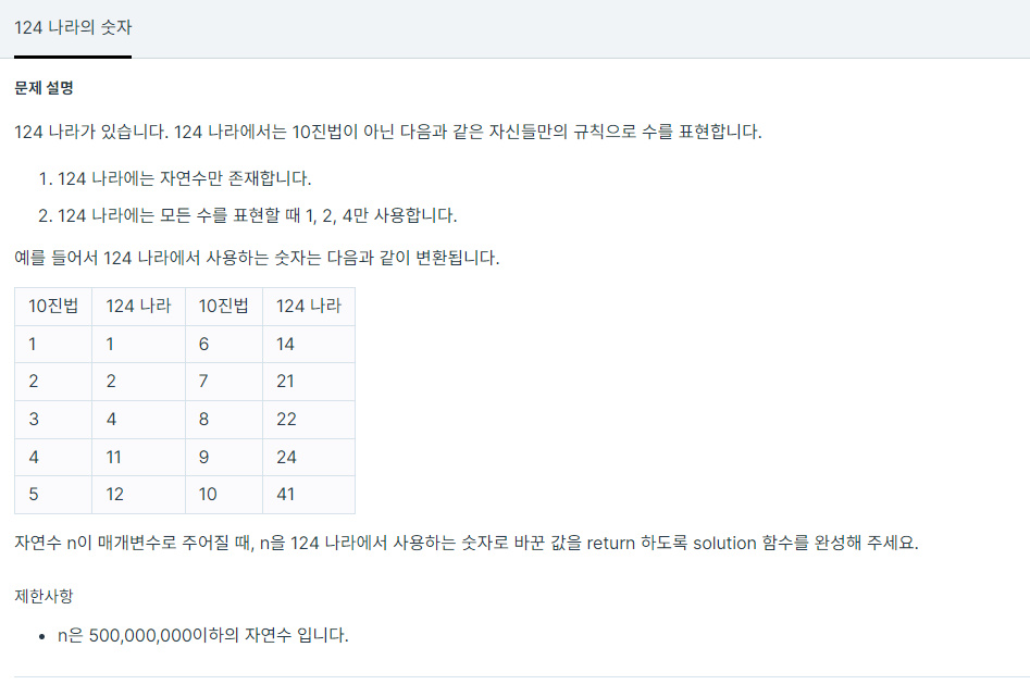코딩테스트 연습 - 124 나라의 숫자