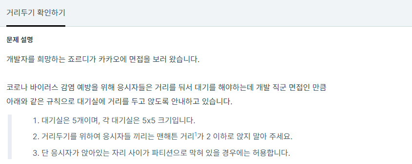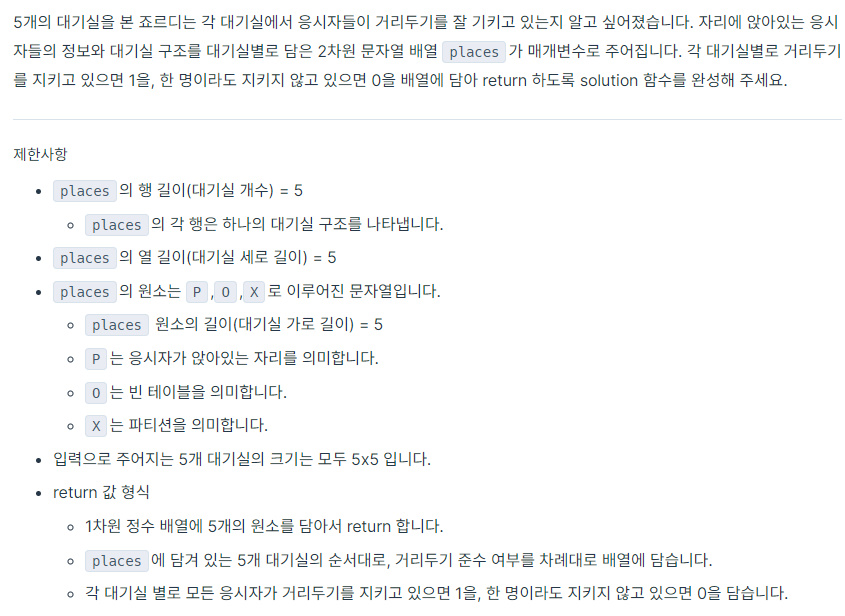 코딩테스트 연습 - 거리두기 확인하기