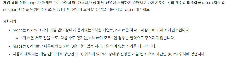 코딩테스트 연습 - 게임 맵 최단거리