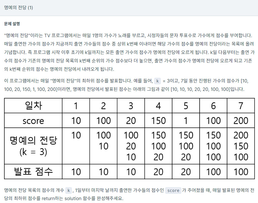 C++ / 프로그래머스 / 명예의 전당 (1) 본문