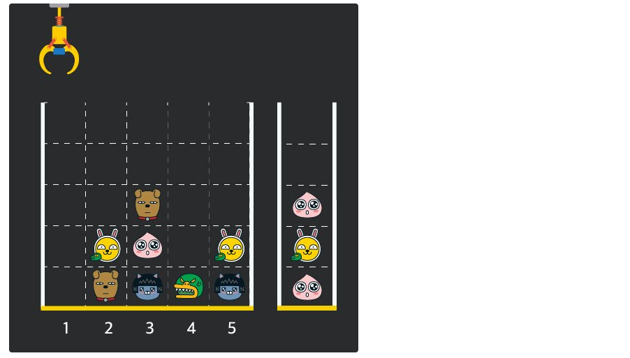 0이면 비어있고 숫자가 같으면 같은인형, 다르면 다른 인형이 담겨있다.
