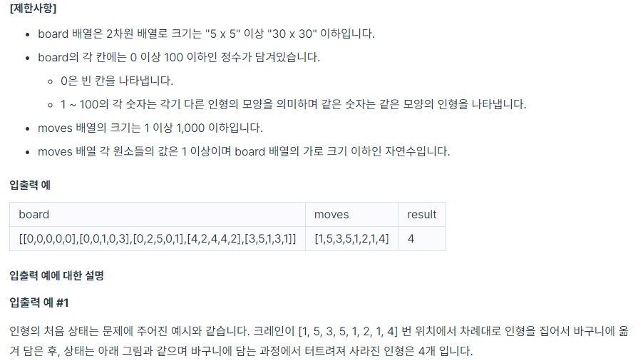 코딩테스트 연습 - 크레인 인형뽑기 게임