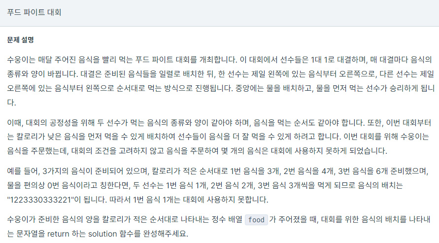 C++ / 프로그래머스 / 푸드 파이트 대회 본문