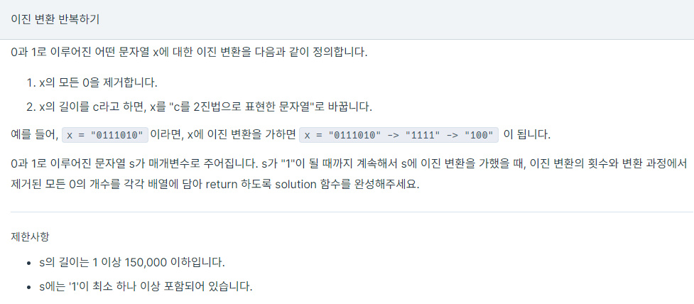 C++ / 프로그래머스 / 이진 변환 반복하기 본문