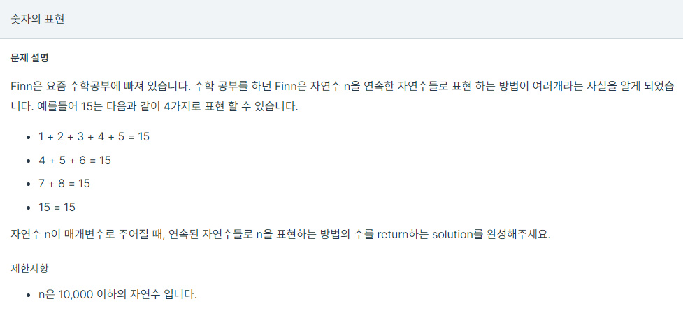 C++ / 프로그래머스 / 숫자의 표현 본문