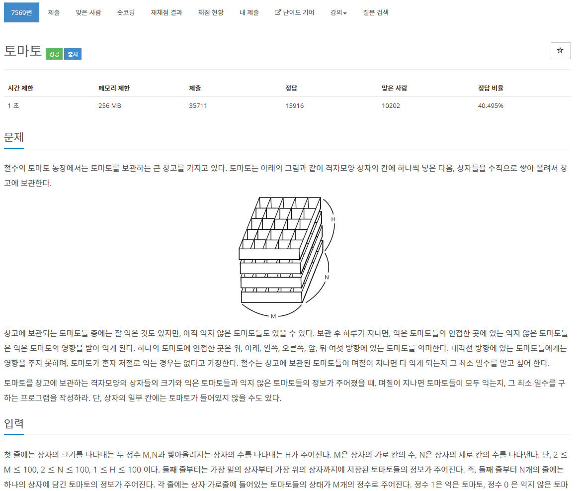 https://www.acmicpc.net/problem/7576