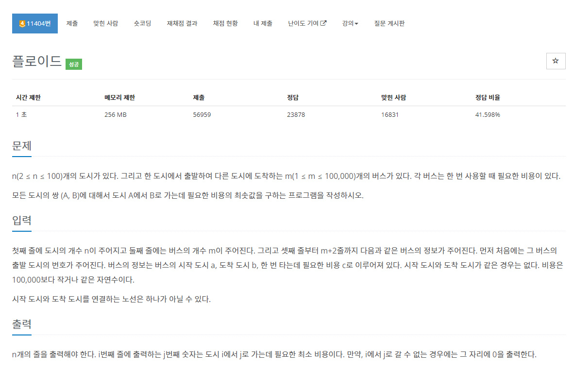 주의해야 할 점은 예제를 보면 같은 시작 도시, 같은 도착 도시가 나올 수 있다. (1, 4, 1), (1, 4 ,2)