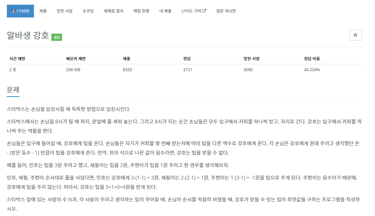 뒤로 갈수록 등수가 늘어나므로 팁은 점점 줄어들것이다.