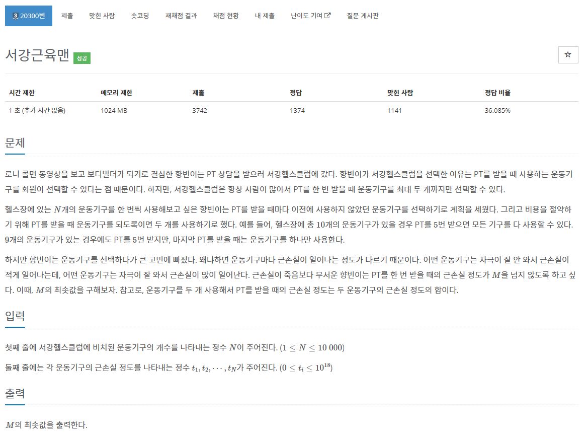 C++ / 백준 / 20300 / 서강근육맨 본문