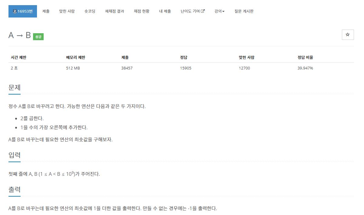 C++ / 백준 / 16953 / A → B 본문