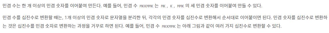 민겸 수 하나가 주어진다. 민겸 수는 대문자 M과 K로만 이루어진 문자열이며, 길이는 3,000을 넘지 않는다.