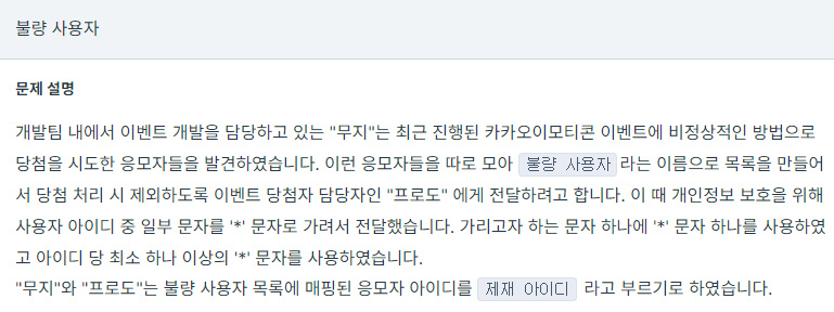밴을 당한 아이디 기준으로 유저 아이디와 크기가 같은지, '*'을 제외하고 모두 같은지를 판별한다.