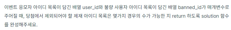 삼중 반복문이 끝났으면 밴을 당한 아이디를 모두 찾았을 것이다.