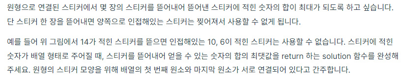 C++ / 프로그래머스 / 스티커 모으기(2) 본문