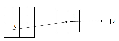 N이 2일 때의 표이다. 여기서 (2,1)인 9의 값을 구해볼 것이다.