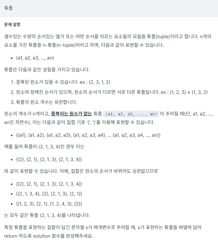 질문글을 봤더니 이미 완성된 튜플이 있고, 그의 부분집합들이 s로 주어지고, 결과는 숫자의 빈도수 기준으로 내림차순된 숫자들을 나열한 것이었다.