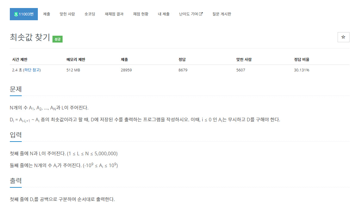 C++ / 백준 / 11003 / 최솟값 찾기 본문