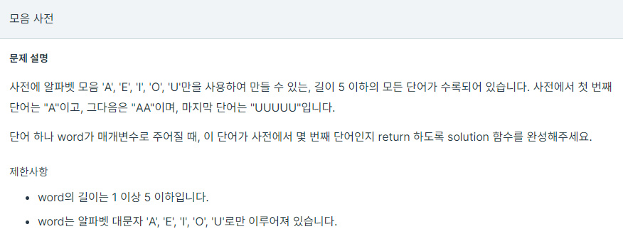 완전탐색으로 A부터 EEEEE까지 모든 경우의 수를 set에 저장한 뒤 A부터 탐색하여 풀었다.