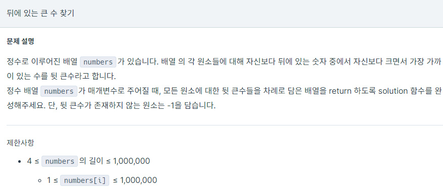 자신보다 뒤에 있는 숫자 중에서 자신보다 크고, 가장 가까이 있는 수를 뒷 큰 수라고 한다.