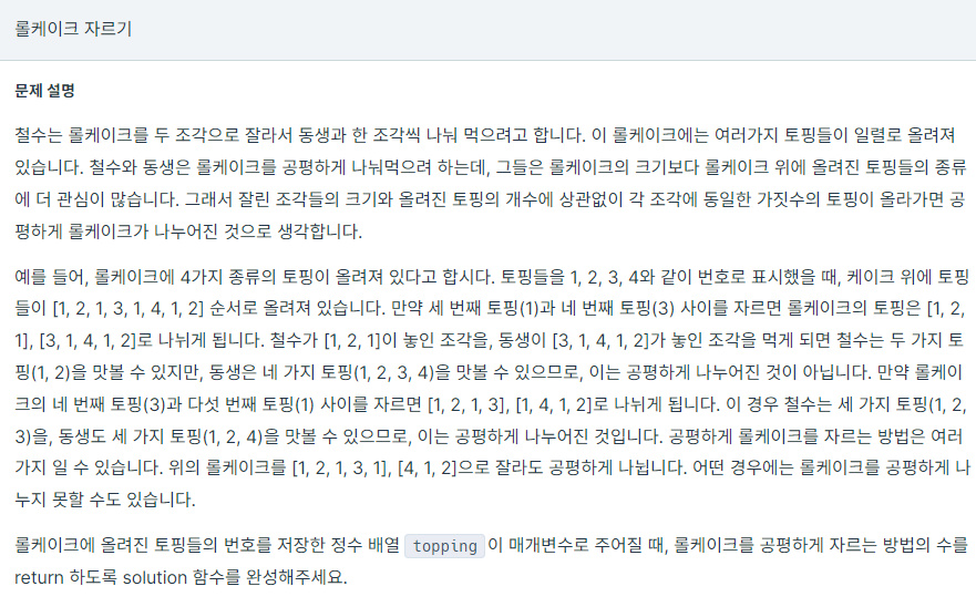 C++ / 프로그래머스 / 롤케이크 자르기 본문