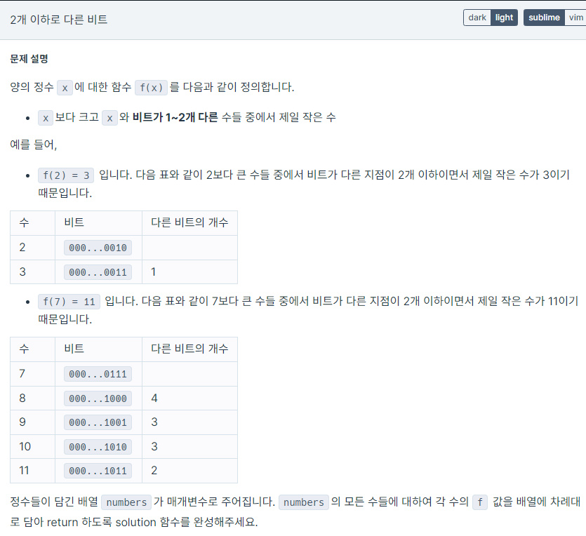 C++ / 프로그래머스 / 2개 이하로 다른 비트 본문