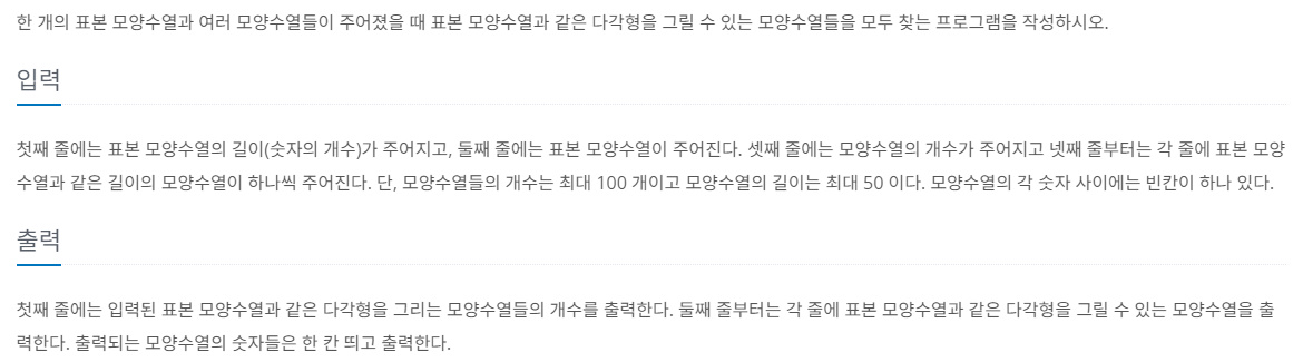 표본 모양수열의 길이와 같은 모양수열을 입력받고, path에서 해당 경로가 있는지를 확인한다.
