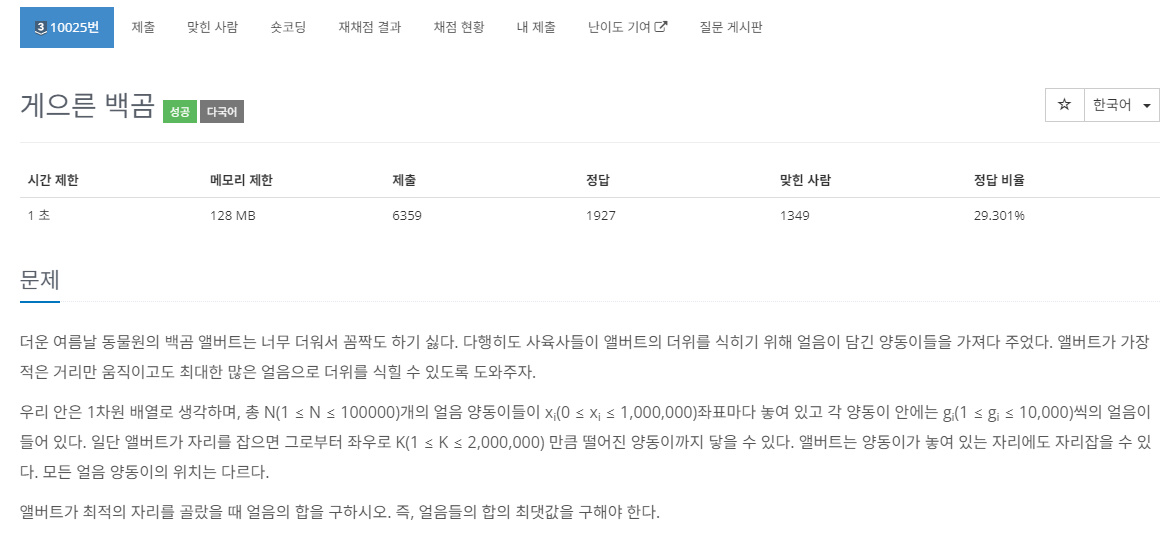C++ / 백준 / 10025 / 게으른 백곰 본문