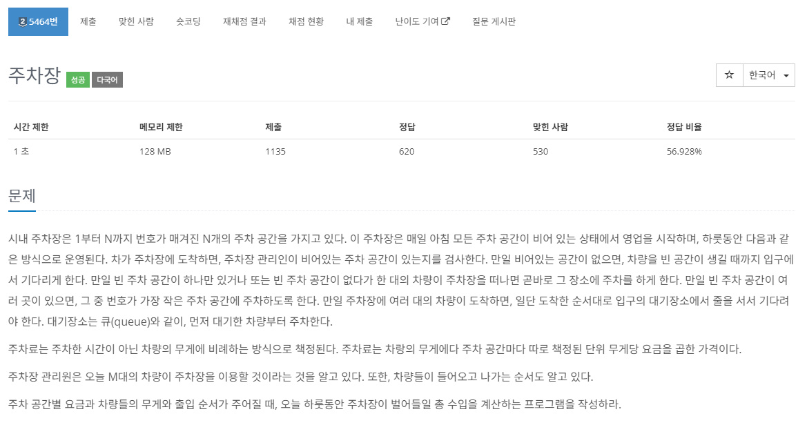 5464번: 주차장