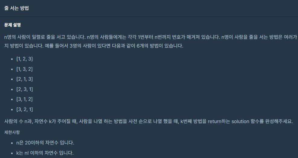 C++ / 프로그래머스 / 줄 서는 방법 본문