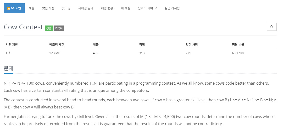 C++ / 백준 / 6156 / Cow Contest 본문