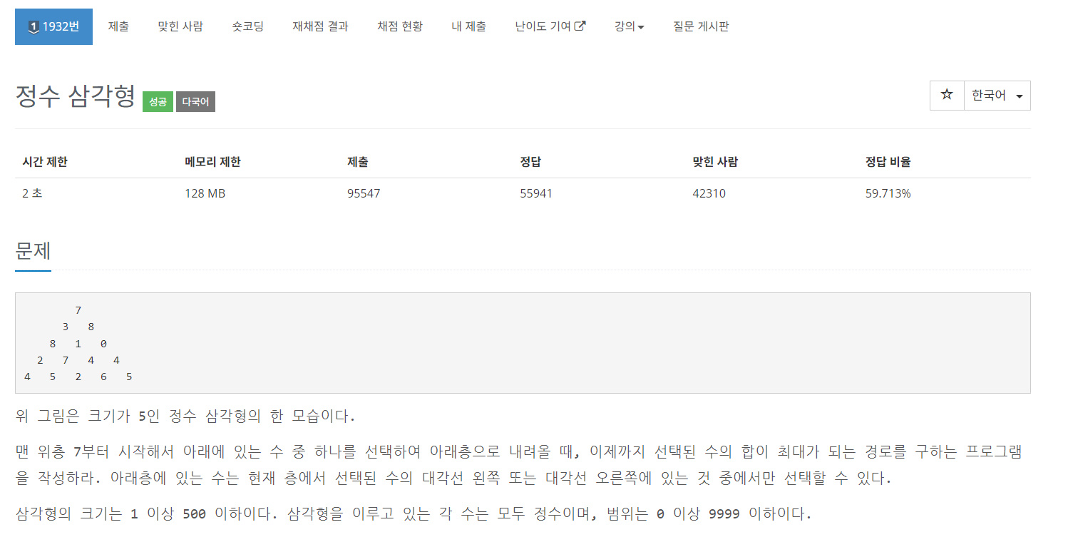 https://www.acmicpc.net/problem/1932