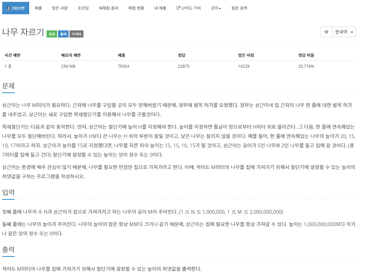 C++ / 백준 / 2805 / 나무 자르기 본문