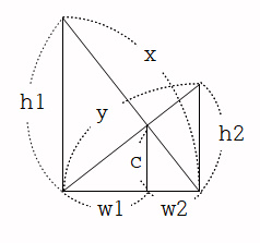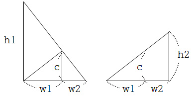 이후에 양변을 루트를 씌우면 h1, h2의 식을 구할 수 있다.