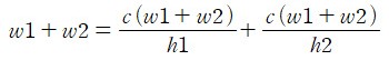 w1+w2를 이분탐색의 mid값으로 두고, h1과 h2값을 구하고 h1*h2/(h1+h2)값과 c값을 비교하면서