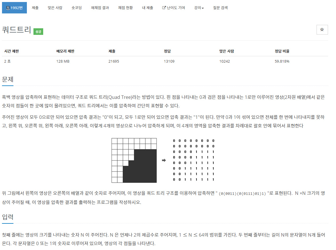 C++ / 백준 / 1992 / 쿼드트리 본문