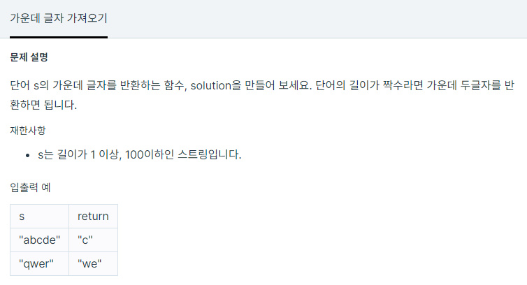 코딩테스트 연습 - 가운데 글자 가져오기
