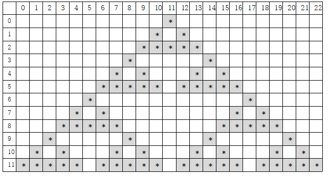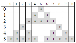 star[y + 2][x - 2 + idx] = '*';