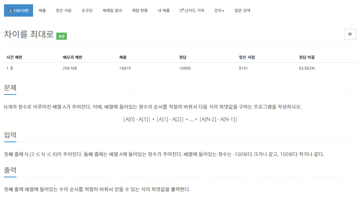 C++ / 백준 / 10819 / 차이를 최대로 본문