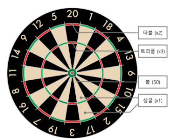 먼저 점수는 1~20, 1~20의 2의 배수, 1~20의 3의 배수, 50점 이렇게 있다.